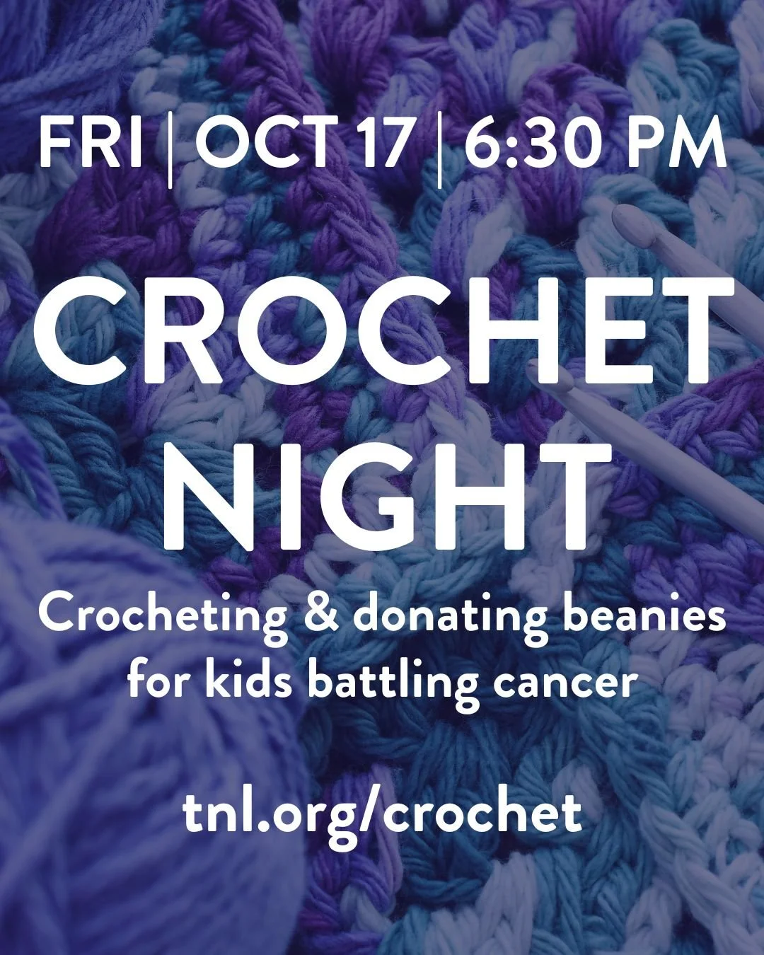 TNL will provide snacks, drinks, yarn, and crochet hooks.