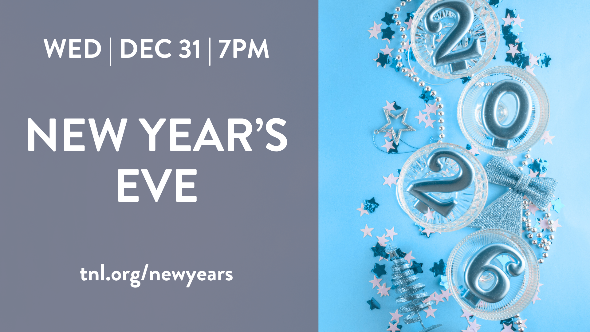 Join us to ring in the New Year at TNL! We will meet at 7pm, celebrate the New Year at 10pm (East Coast New Year) and again at midnight for those who wish to stay!